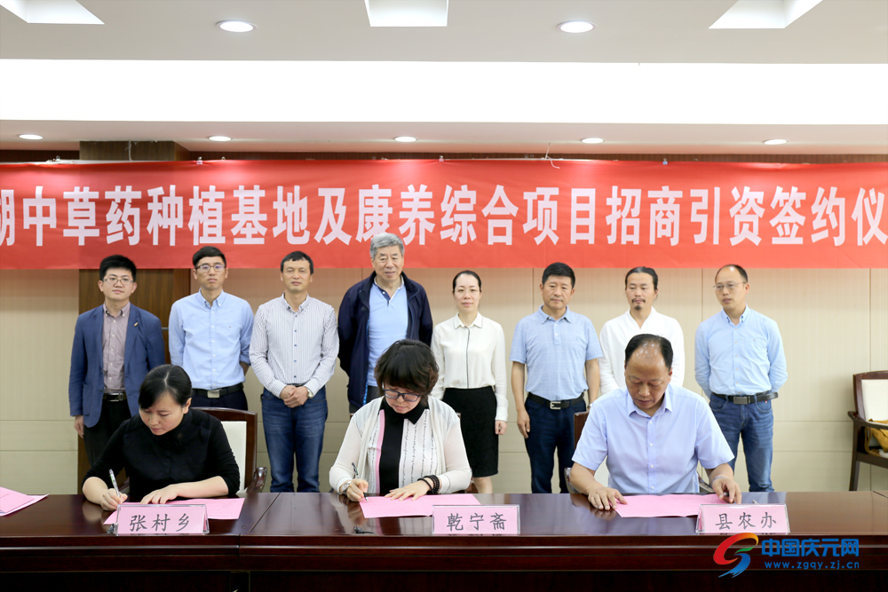 5月8日上午,庆元县澄湖中草药种植基地及康养综合项目招商引资签约仪式举行。仪式上,县农办、张村乡与乾宁医药集团公司三方签订招商引资协议书。根据协议,浙江乾宁医药集团公司将投资1.78亿元,在我县建设一个中草药种植基地及康养综合项目。